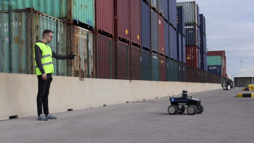 Tanto la comunicación del AGV de ABB como el de Robotnik se realizaron mediante conectividad 5G de mmW (millimeter Waves) gracias a la antena instalada en la zona del puerto donde se realizaron las pruebas. Nokia fue el encargado de configurar la red 5G para el caso de uso, y también controló el AGV de ABB de manera remota con su Cockpit Inmersivo integrado por un volante y unas gafas de realidad virtual.