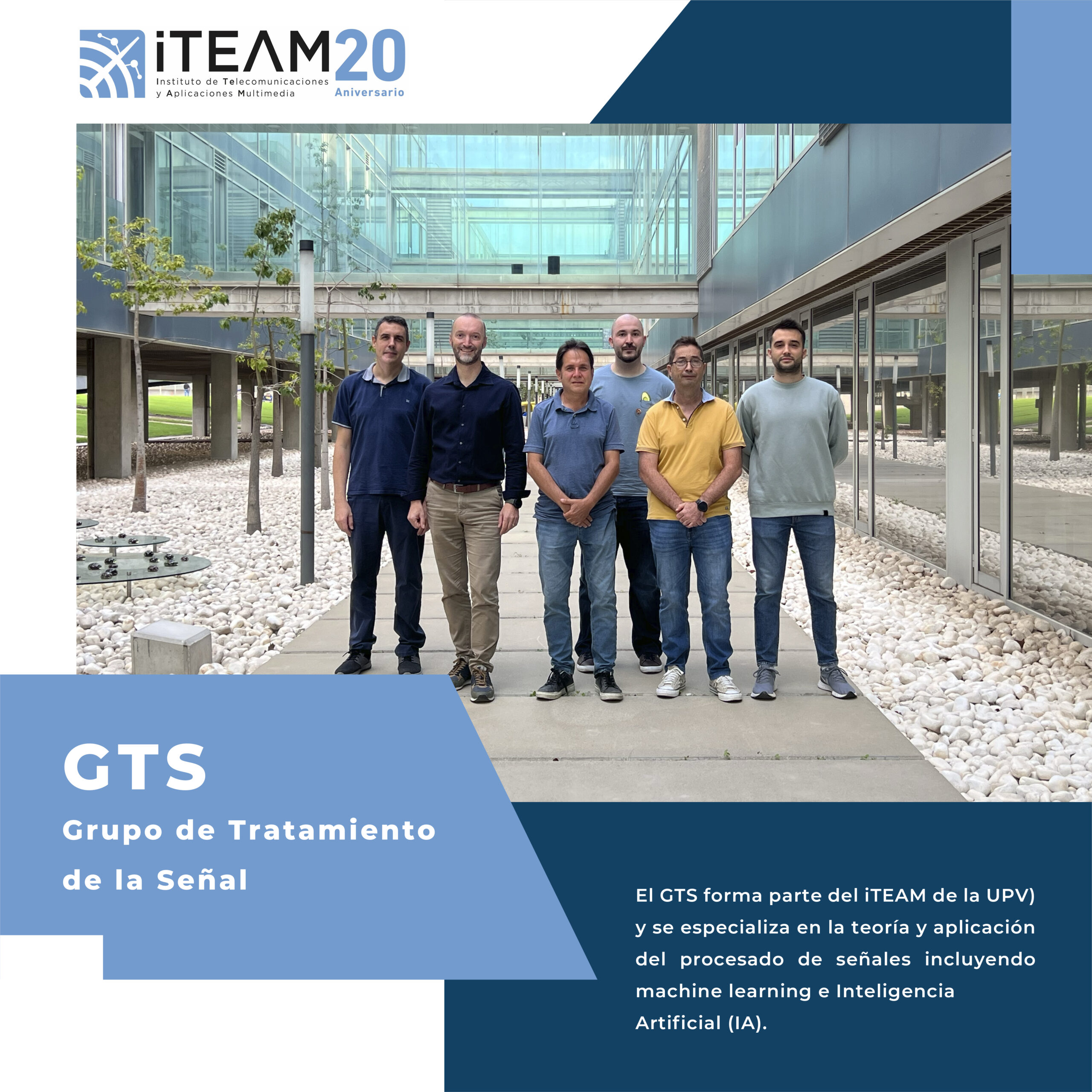 The Signal Processing Group (GTS) is a member of the Instituto de Telecomunicación y Aplicaciones Multimedia (iTEAM) of the Universidad Politécnica de Valencia (UPV, Spain). It specializes in the theory and application of signal processing, including machine learning and Artificial Intelligence (AI). Its key research areas are: