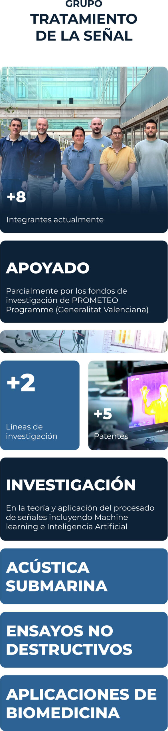 The Signal Processing Group (GTS) is a member of the Instituto de Telecomunicación y Aplicaciones Multimedia (iTEAM) of the Universidad Politécnica de Valencia (UPV, Spain). It specializes in the theory and application of signal processing, including machine learning and Artificial Intelligence (AI). Its key research areas are: