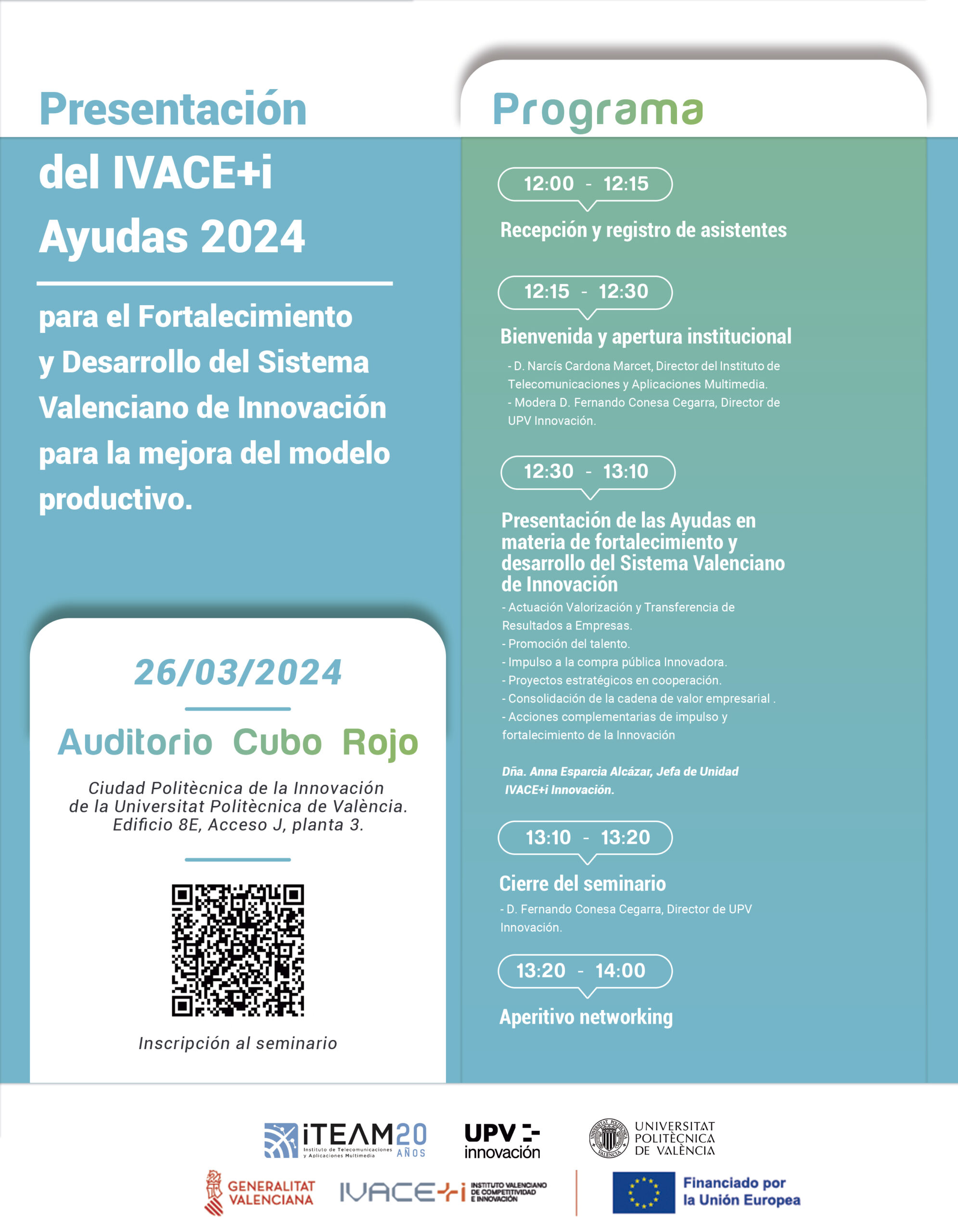 Presentación del IVACE+i de las Ayudas 2024 para el Fortalecimiento y Desarrollo del Sistema Valenciano de Innovación para la mejora del modelo productivo